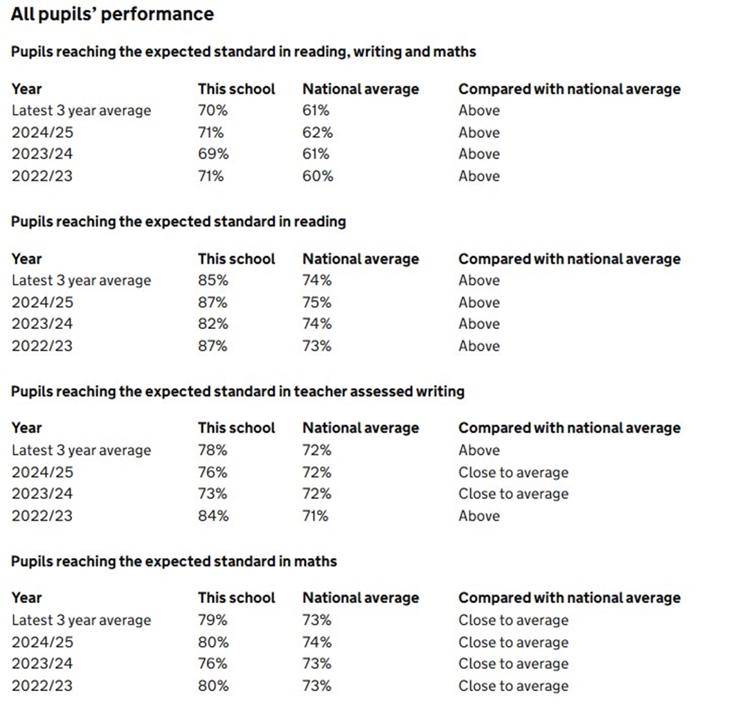 During the first six weeks of starting school, we complete a national baseline assessment of the pupils’ starting points in: language, communication, literacy, and mathematics which is completed 1: 1 with their class teacher. The results are sent directly to the Department of Education. To create school-level progress measures to show the progress pupils make from reception until the end of key stage 2 (KS2). These results are not shared with schools (or parents) until the summer they reach Year 6.