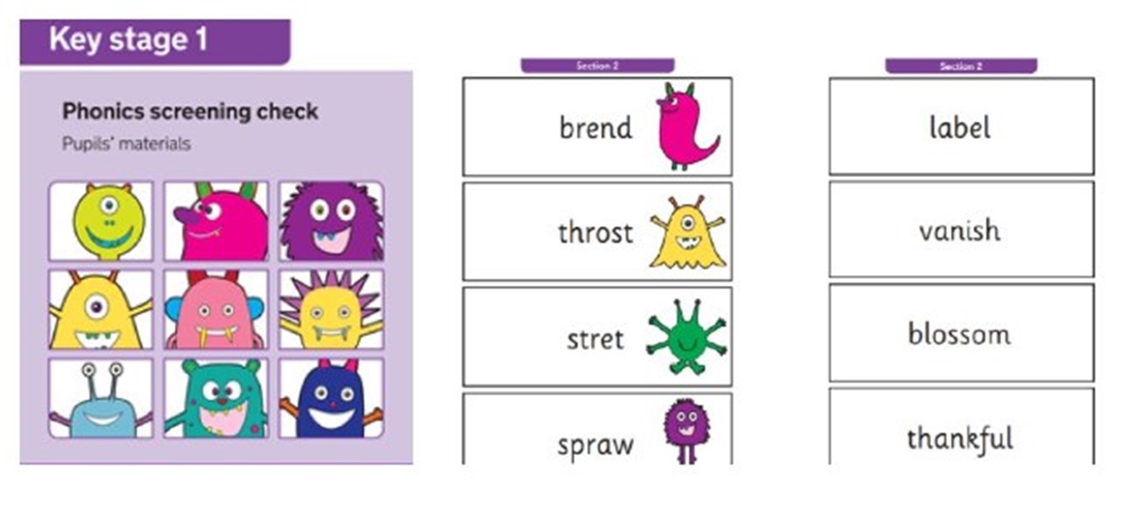 The check will contain a mix of real words and 'non-words' or 'pseudo-words' (or nonsense/alien words). Children will be told before the check that there will be non-words that he or she will not have seen before. The children will already be familiar with this through their phonics lessons. Non-words are important to include because words such as 'vap' or 'jound' are new to all children. Children cannot read the non-words by using their memory or vocabulary; they have to use their decoding skills. This is a fair way to assess their ability to decode.